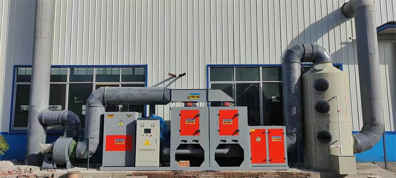 3、催化燃烧设备:在催化剂的作用下,使废气中的有机物在较低温度下发生氧化反应,转化为无害的二氧化碳和水。适用于处理高浓度、小风量的有机废气。